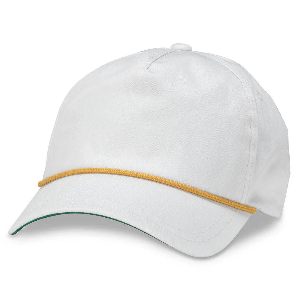 Light weight cotton 5-Panel with a semi-structured crown & mesh flip-up stay. Curved brim visor with nylon rope across visor. Adjustable Velcro backstrap.